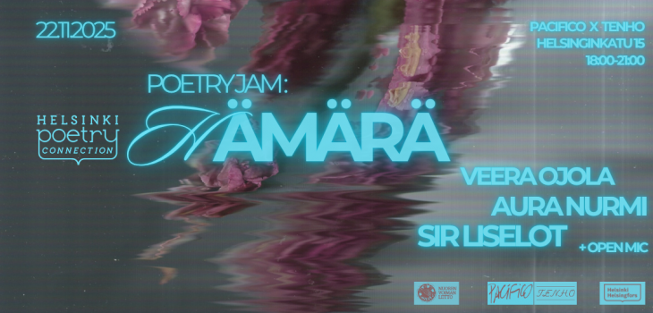 The event is produced and hosted by Aika Huusko and Sonja Kaisanlahti from Helsinki Poetry Connection, in collaboration with Nuoren Voiman Liitto. Supported by the City of Helsinki.
