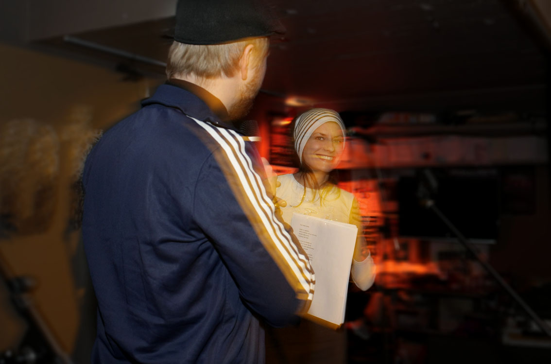 Poetry Jamit 18.2.2011 / Kuvat: Sara Vallioja 24. 02. 2011 Taneli Viljanen Henry Toivo Juha Rautio Rauhatäti Papa Jahmani´s HI-FI Kiiski Open Mic 25.2.2011 Kiiski Open Mic 25.2. / Kuvat: Robert Keskinen Related articles PodCast: Pääministerin hepulikohtausLuukku 24: Vanha honkaLuukku 23: RESEPTI AITOON JOULUMIELEENLuukku 22: Tibetan librarianLuukku 21: Aurinko on kuollutLuukku 20: Paksu lumi, äänetön…Luukku 19: UskontunnustusLuukku 18: Mistä tiesi?Luukku 17:Kuningas alkoholilta tuli käskyLuukku 16: Meidän perheemme Bono