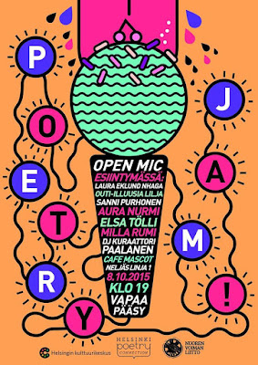 Kulttirunoklubi Poetry Jam palaa kulttuurimekka Cafe Mascotiin (Neljäs linja 1, 00530) torstaina 8.10.2015 klo 19 alkaen. Illan äänimaestro ja tiskijukka Kuraattori Paalanen laittaa tuntia aiemmin levyt soimaan, jonka jälkeen lavalle astelee joukko runopäitä, jotka kaikki edustavat omanlaistaan ilmaisutapaa ja runouden käsitystä.