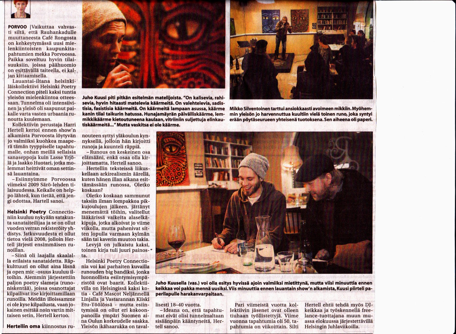 Uusimaa -lehti kirjoitti Porvoon keikasta 3.3.2014 05. 03. 201405. 06. 2018 Hertellin toisen runokokoelman voi tilata myös ennakkoon Kuvituskilpailun voittaja on valittu! Related articles Hallitus 2025Kiitokset ja terveiset Tanner-gaalastaHelsinki Poetry Connection on 2025…Helsinki Poetry Connectionin hallitus vuodelle…Helsinki Poetry Connectionin hallitus vuodelle…Apuraha Jenny ja Antti Wihurin…HPC:n uusi hallitus valittu”Luokkahuoneena lava” – artikkeli Lavarunoakatemiasta…HPC:n kriisihallitus valittuHPC:n turvallisemman tilan periaatteet /…
